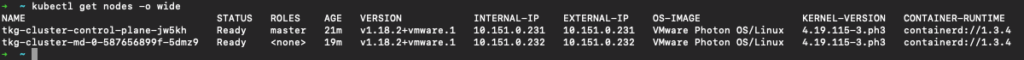 Figure 14 – Using Kubectl to interact with our newly deployed TKG guest (workload) cluster
