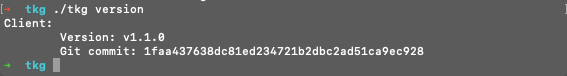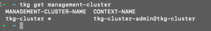 Figure 12 – TKG CLI displaying a connection to our newly deployed TKG Management Cluster on vSphere 6.7