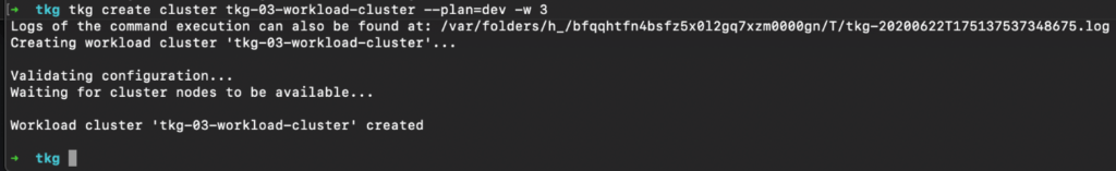 Figure 13 – Using the TKG CLI to deploy TKG guest (workload) clusters