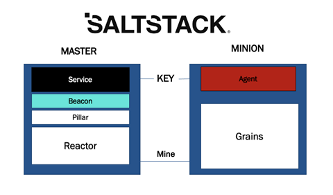 SaltStack is run with a Master/Minion architecture. This means that the Master has all the needed configuration to make sure the Minions are running following their state configuration. The state files are stored on the Master as well as any other files needed to create functions for the minions as shown in Figure 1 below.