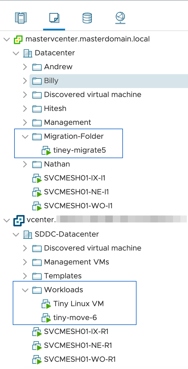 Within the HCX plug-in provided within the vCenter Cloud Gateway, we can kick off a migration by setting some basic parameters and going through a validation, as shown in Figure 8. Figure 9 displays the successful migration, and Figure 10 reveals the new location of the tiny-move-6 virtual machine to our on-premises data center.