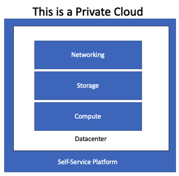 Cloud has two essential components: self-service and platforms. This is evident when we think about the different cloud business-models, such as infrastructure-as-a-service (IaaS); platform-as-a-service (PaaS); software-as-a-service (SaaS); and function-as-a-service, commonly termed “serverless” (FaaS). What each has is a platform through which you can access for yourself — or, ‘self-service’ — the function that the platform conveys. IaaS allows you to self-service infrastructure through that platform (or, graphical user interface [GUI]), and the same goes for PaaS, SaaS, and FaaS. They all allow you to self-service what you need on the platform provided. This does not work on simple network + storage + compute. For a datacenter to become a “cloud,” it must have a platform for self-service allowing the raw components to be accessed and utilized.