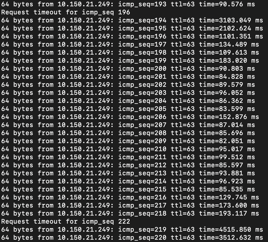 All while maintaining a continuous ping which, as shown in Figure 12, only dropped a few throughout the entire migration.