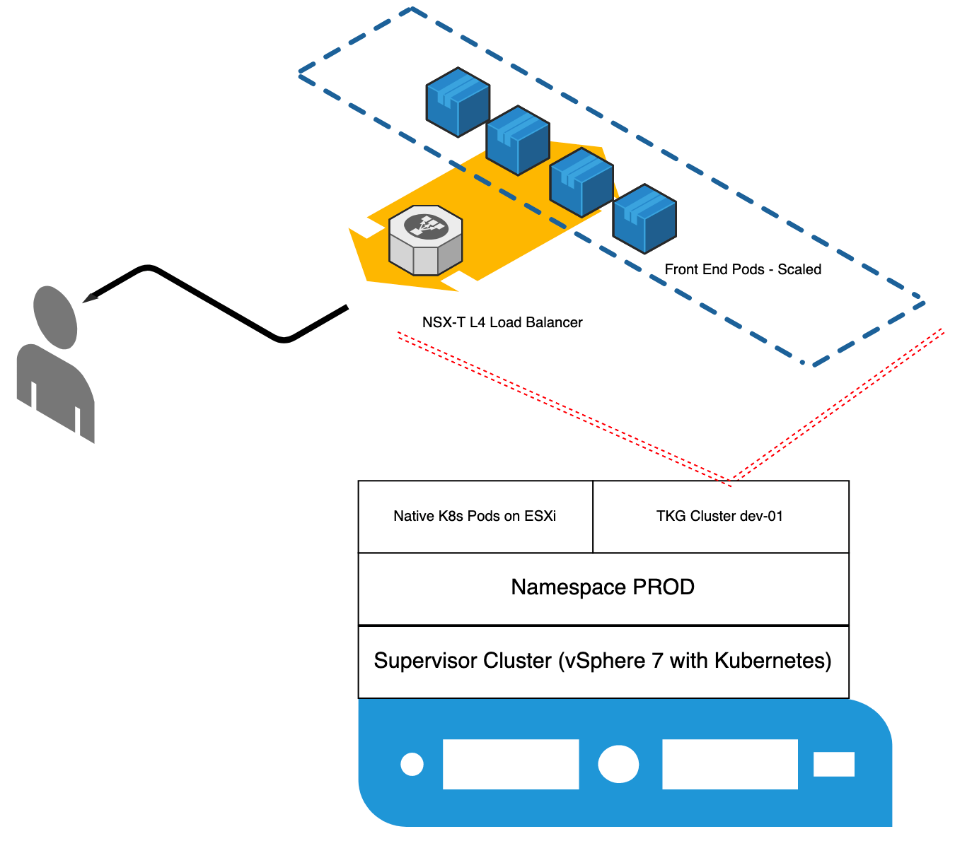 In this example, I am using vSphere 7 with Kubernetes coupled with a guest TKG cluster running a simple web application with a basic topology shown in Figure 1.
