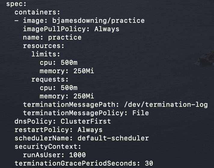 In this case, I have a simple web application written in Go, and a busy-box pod that will be used to generate traffic. For this demonstration, I have set the resource limits and requests very low on my deployment to allow for fast scaling of objects within my autoscale group once any sort of load occurs. Figure 4 provides the container spec for the web front end and its associated resource limits and requests.