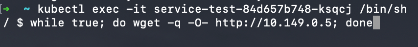 Now we’ll generate traffic to start hitting the front end, which in this case is a Virtual IP hosted by an NSX-T load balancer (could be an AWS ALB as well) to have our application take on some stress and begin deploying more pods to handle the load. To accomplish this in a test environment, a simple while loop from the busy-box pod to continuously hit the main page of the web app will suffice.